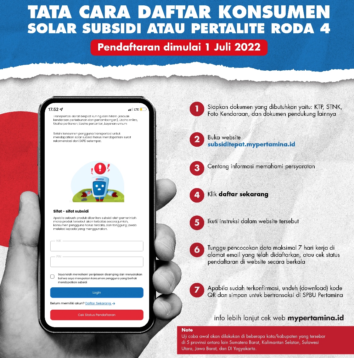 Mekanisme baru tersebut sedang diuji coba dan dimulai dengan pendaftaran di website MyPertamina. Pendaftaran ini dimaksudkan untuk pencocokan data berbasis sistem atau digital.