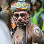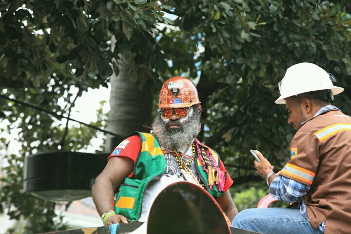 Jakarta, Petrominer – Sejumlah pekerja tambang menggelar aksi Gerakan Solidaritas Peduli Freeport (GSPF) di depan Istana Presiden Republik Indonesia dan Kementerian Energi dan Sumber Daya Mineral (ESDM), Selasa (7/3). Selain berorasi, mereka juga menampilkan tarian dan lagu-lagu asli Papu, lengkap dengan busana dan riasannya.