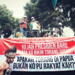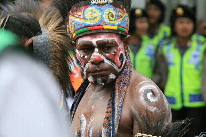 Sambil menyampaikan orasi, para pengunjuk rasa juga menampilkan tarian-tarian dan lagu-lagu asli Papua., lengkap dengan busana dan riasannya. (Petrominer/Sony)