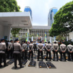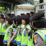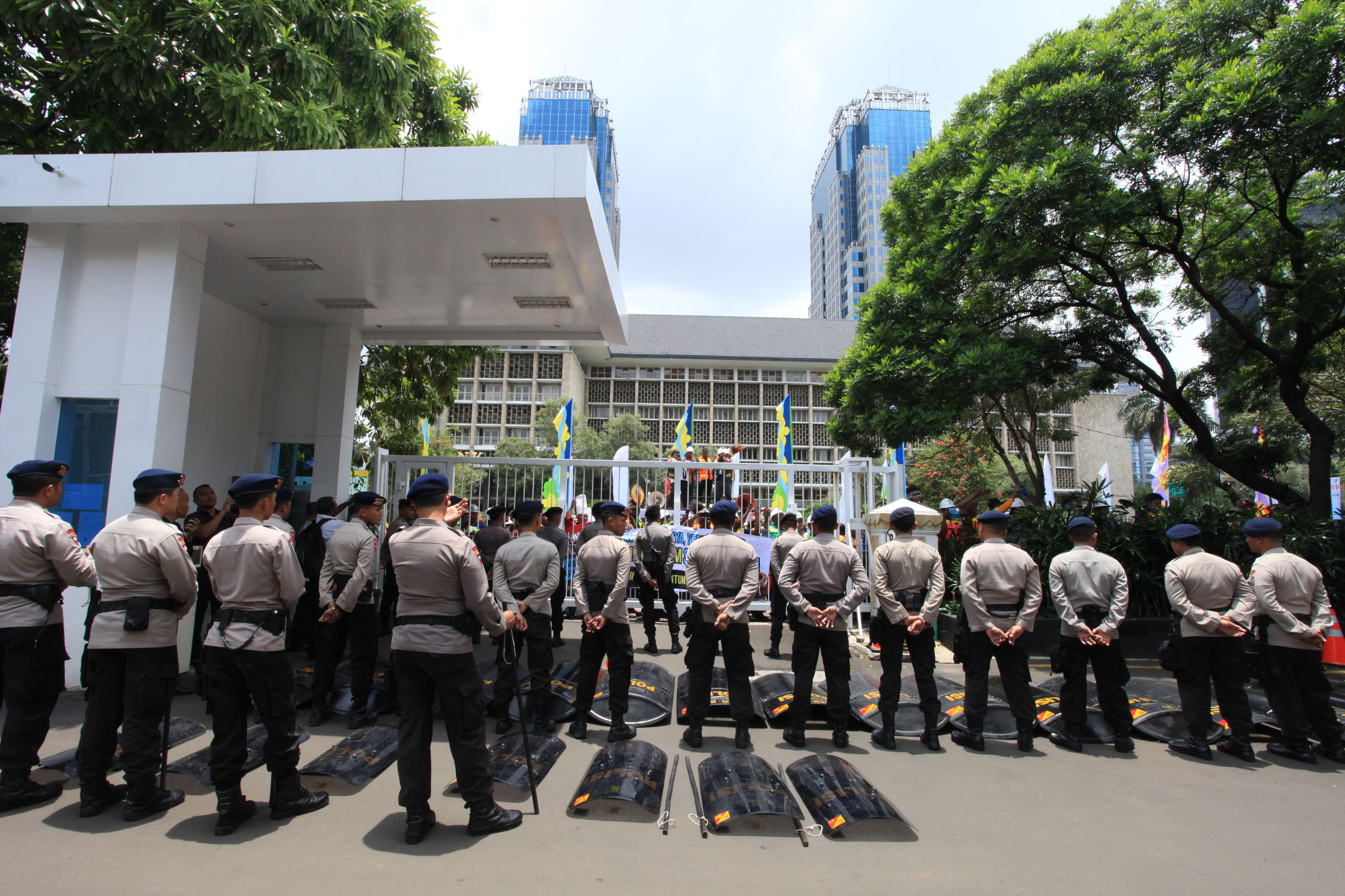 Selain para pengunjuk rasa, hadir juga Kepolisian Republik Indonesia yang mengawal jalannya unjuk rasa dan mengatur arus lalu lintas. Mereka telah bersiaga di lokasi sejak pukul 7 pagi. (Petrominer/Sony)