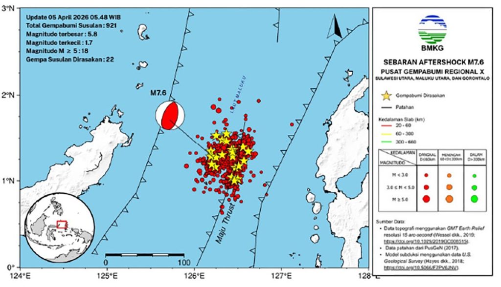 Hingga saat ini, Badan Meteorologi, Klimatologi, dan Geofisika (BMKG) mencatat telah terjadi 921 gempa susulan sejak gempa utama pada 2 April 2026. Jumlah tersebut menunjukkan bahwa aktivitas seismik masih berlangsung dan diperkirakan memerlukan waktu lebih dari satu pekan untuk kembali menuju kondisi keseimbangan.