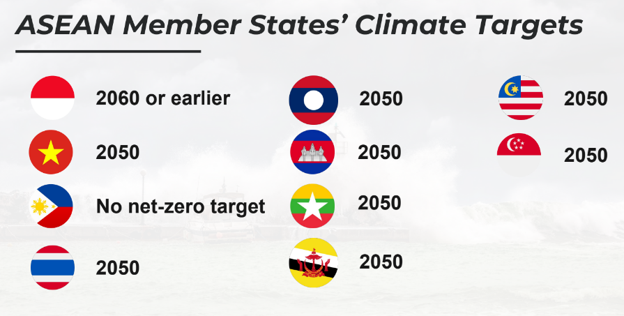 Pertumbuhan ekonomi di kawasan ASEAN perlu selaras dengan komitmen menurunkan emisi gas rumah kaca sesuai dengan Persetujuan Paris. ASEAN sendiri mempunyai target untuk mengejar 23 persen bauran energi terbarukan pada tahun 2025. Di sisi lain, menurut IEA, 80 persen bauran energi primer negara di kawasan Asia Tenggara masih berasal dari energi fosil.