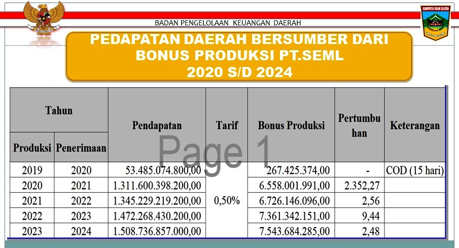 Dia menjelaskan, untuk bonus produksi SEML, mampu menghasilkan penerimaan daerah rata-rata per tahun di angka Rp 7 miliar. Angka ini meurpakan 0,5 persen dari pendapatan bruto SEML per tahunnya, yang tahun 2024 sekitar Rp 1,4 triliun.
