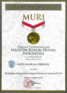 Sebelumnya, kurikulum pembelajaran yang diusung PAUD Alam Al-Firdaus juga mencatat prestasi gemilang lainnya. Atas inisiasi dan inovasinya dalam pendidikan pengelolaan sampah bagi anak-anak usia dini, PAUD Alam Al-Firdaus mendapat piagam penghargaan Museum Rekor-Dunia Indonesia (MURI) pada Oktober 2020.