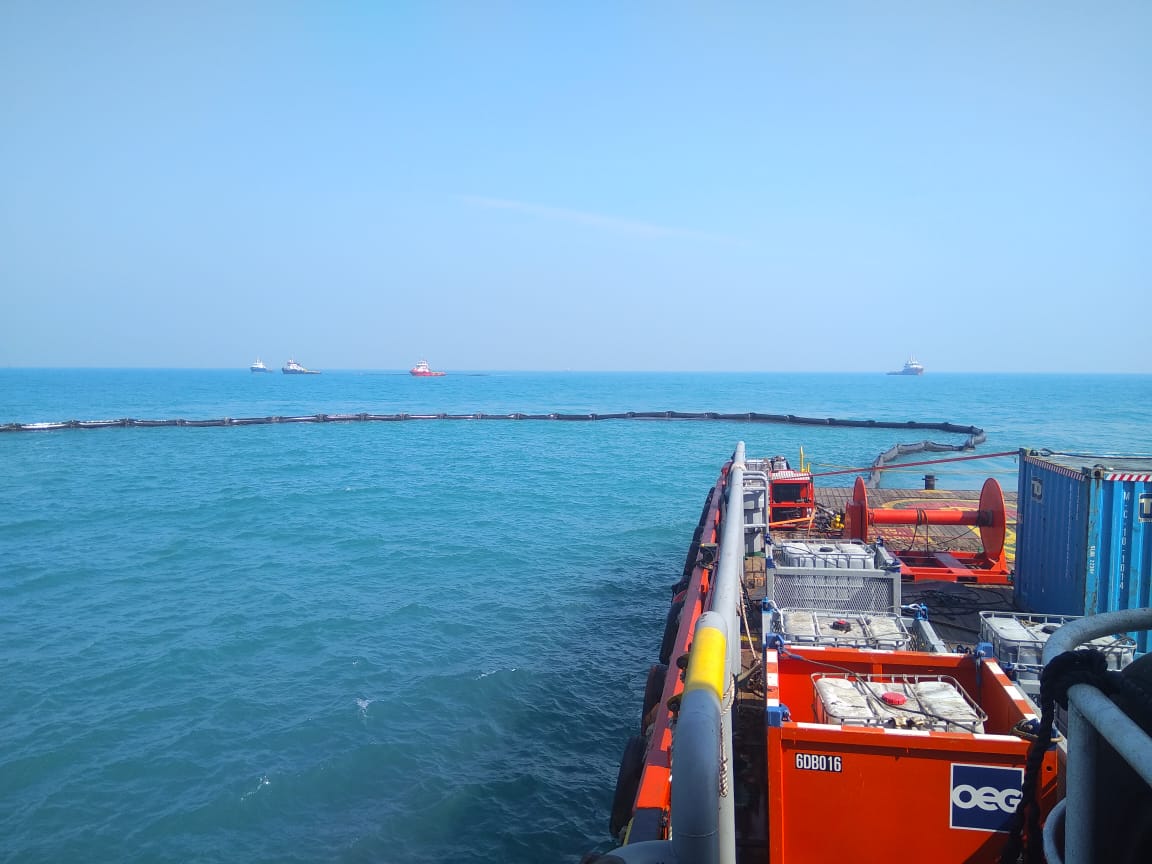 “Ttujuh lapis proteksi telah kami kembangkan di sekitar daerah terdampak. Di lapis pertama kita pasang static oil boom di sekitar anjungan YYA-1 sepanjang 2.450 meter untuk menahan oil spill dalam lingkungan anjungan. Di layer kedua, kita juga memasang moveable oil boom sepanjang 2×200 meter untuk menghadang ceceran minyak dari lapis pertama yang masih belum tertahan sepenuhnya,” jelas Nicke.