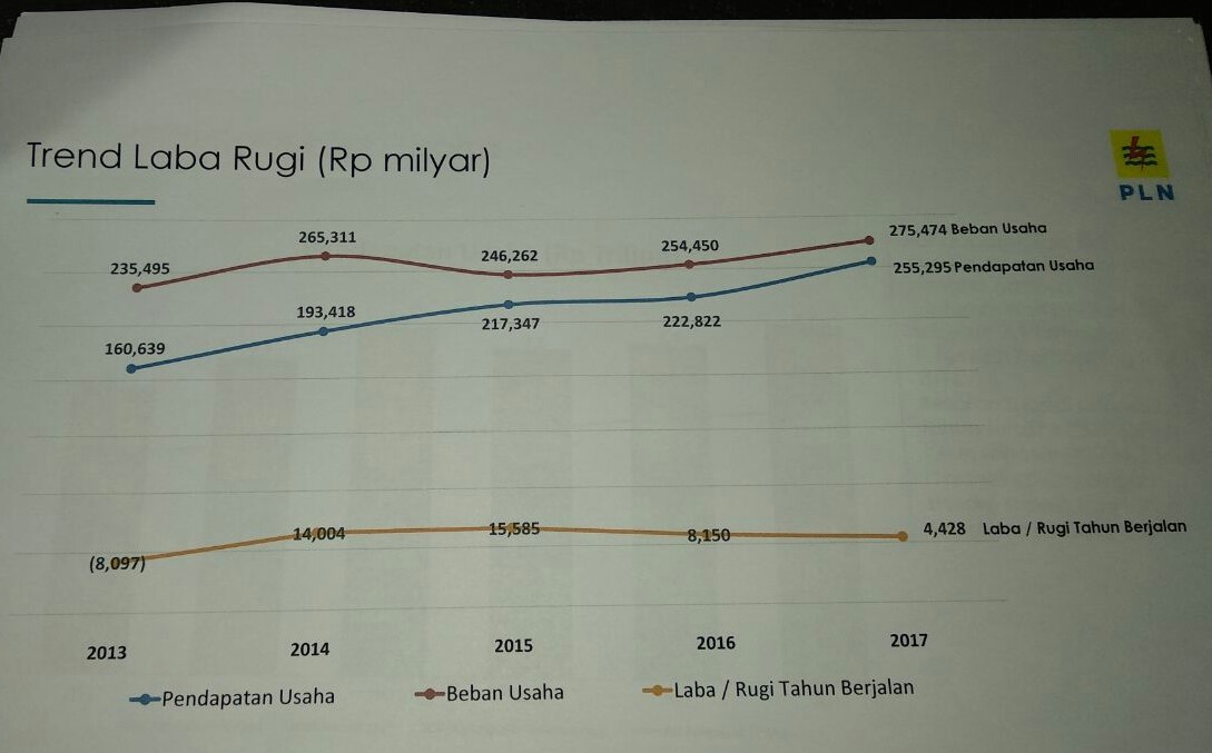 Grafik tren laba rugi PT PLN (Persero) 2013-2017.