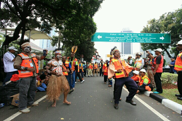 Sambil menyampaikan orasi, para pengunjuk rasa juga menampilkan tarian-tarian dan lagu-lagu asli Papua. (Petrominer/Sony)