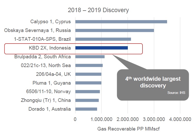 “Temuan tersebut merupakan penemuan cadangan keempat terbesar di dunia periode 2018-2019. Pertama yaitu di Calypso 1-Cyprus, kedua di Obskaya Severnaya 1-Rusia dan ketiga di 1-STAT-010A-SPS-Brazil,” jelas Dwi.
