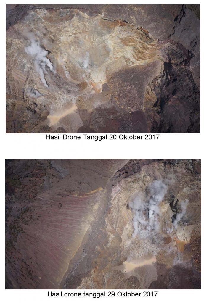 Hal ini berkorelasi dengan peningkatan kegempaan seismik yang juga terjadi pada periode ini, mengindikasikan pergerakan magma yang cukup signifikan di bawah permukaan. Pada periode pemantauan selanjutnya, energi termal masih teramati berada pada tingkatan yang relatif sama hingga pertengahan Oktober 2017. Setelah itu, setidaknya sejak 14 Oktober 2017, energi termal yang terdeteksi oleh citra satelit ASTER TIR maupun Sentinel-2 mengindikasikan adanya penurunan aktivitas magmatik.