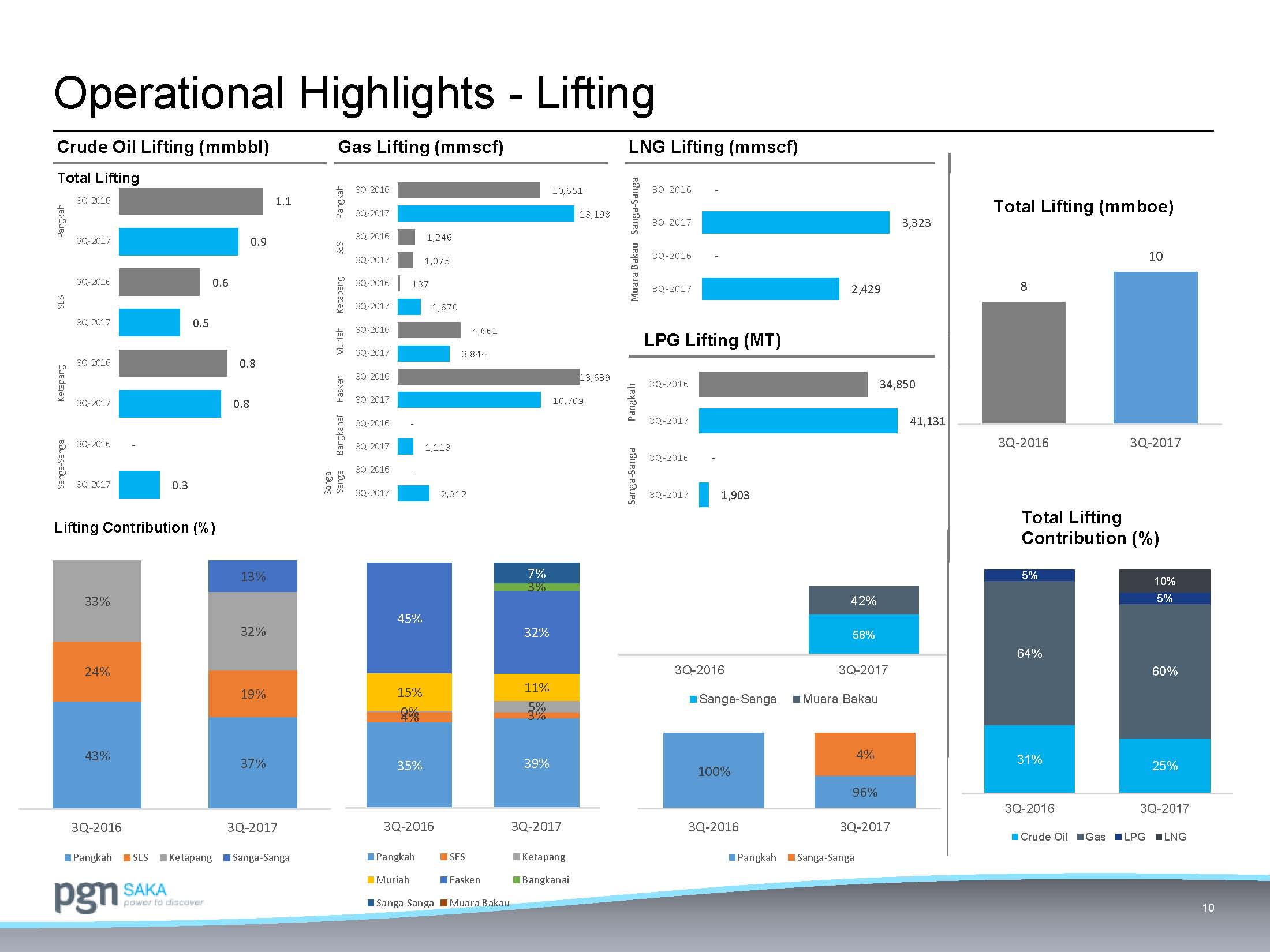 Kinerja yang membanggakan, ujar Tumbur, terlihat dari kenaikan produksi dan pendapatan tahun ini yang signifikan. PGN Saka mencatat kenaikan produksi mencapai 53.000 barrel oil equivalent per day (BOEPD) dan peningkatan penghasilan secara signifikan dibandingkan target awal tahun 2017.