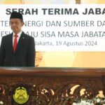 Jakarta, Petrominer – Menteri Energi dan Sumber Daya Mineral (ESDM), Bahlil Lahadalia, bersama pejabat lama Menteri ESDM, Arifin Tasrif, melakukan prosesi acara serah terima jabatan di Kementerian ESDM, Senin (19/8).
